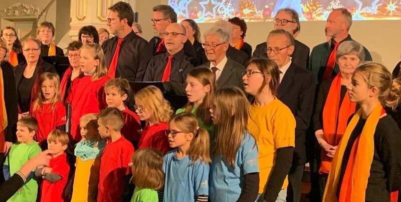 Auf dem Foto: Kinderchor und Flaxtöne der Chorgemeinschaft Volkmarshausen, Chorgemeinschaft Bonaforth