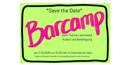Die Auftaktveranstaltung am 11. Oktober 2025 wird als Barcamp gestaltet. Ein Barcamp ist ein Veranstaltungsformat, bei dem jede*r Einzelne ein eigenes Thema zur Diskussion stellen kann. Im Vorfeld werden die Themen gesammelt und dann abgestimmt, zu welchen Themen gearbeitet und diskutiert werden soll. Themen können im Vorfeld per E-Mail eingereicht oder an dem Tag mitgebracht werden.